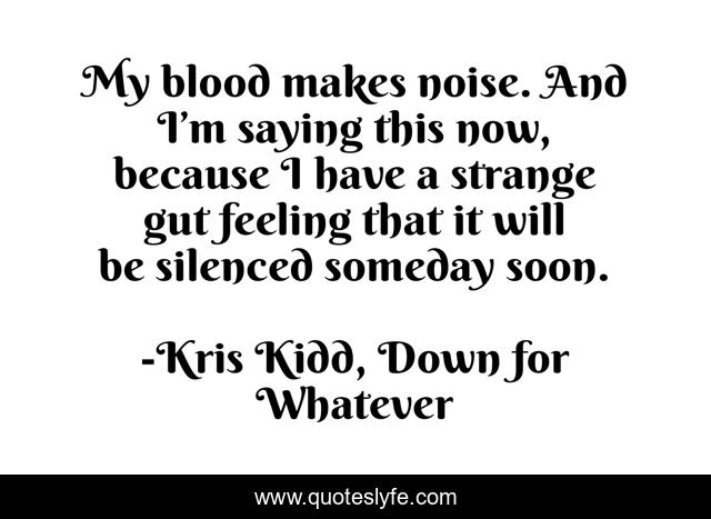 This page presents the quote "My blood makes noise. And I’m saying this now, because I have a strange gut feeling that it will be silenced someday soon.". Author of this quote is Kris Kidd, Down for Whatever. .