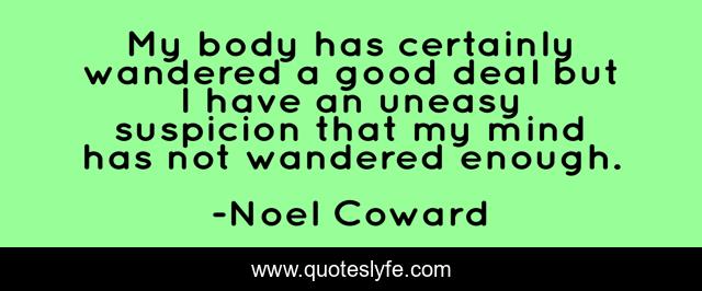 This page presents the quote "My body has certainly wandered a good deal but I have an uneasy suspicion that my mind has not wandered enough.". Author of this quote is Noel Coward. .