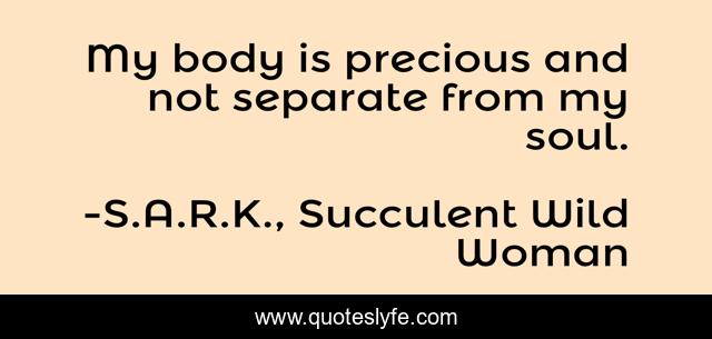 This page presents the quote "My body is precious and not separate from my soul.". Author of this quote is S.A.R.K., Succulent Wild Woman. This quote is about body, soul,.
