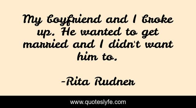 This page presents the quote "My boyfriend and I broke up. He wanted to get married and I didn't want him to.". Author of this quote is Rita Rudner. This quote is about married, him,.