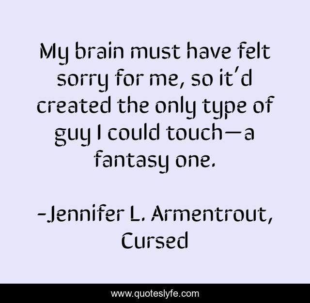 This page presents the quote "My brain must have felt sorry for me, so it’d created the only type of guy I could touch—a fantasy one.". Author of this quote is Jennifer L. Armentrout, Cursed. This quote is about fantasy, sorry, no-touch,.
