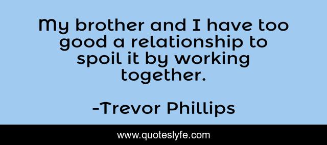 This page presents the quote "My brother and I have too good a relationship to spoil it by working together.". Author of this quote is Trevor Phillips. This quote is about working together, good,.