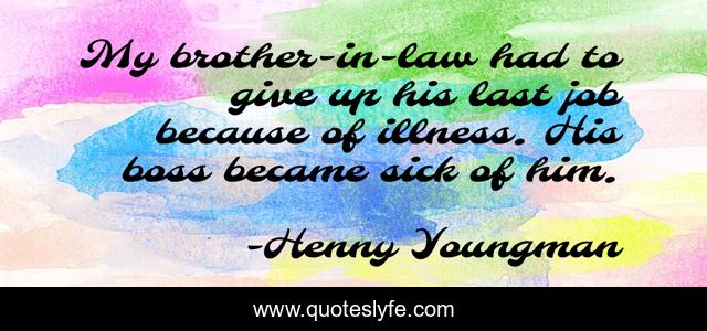 This page presents the quote "My brother-in-law had to give up his last job because of illness. His boss became sick of him.". Author of this quote is Henny Youngman. This quote is about professions, work,.