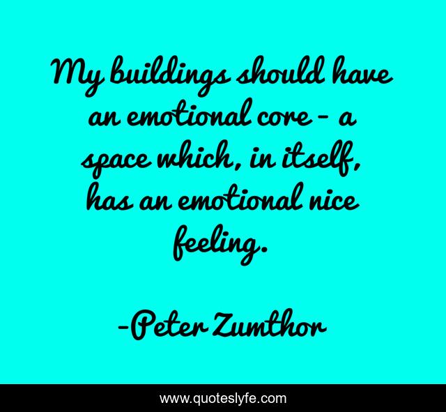 This page presents the quote "My buildings should have an emotional core - a space which, in itself, has an emotional nice feeling.". Author of this quote is Peter Zumthor. This quote is about emotional, feeling, nice,.