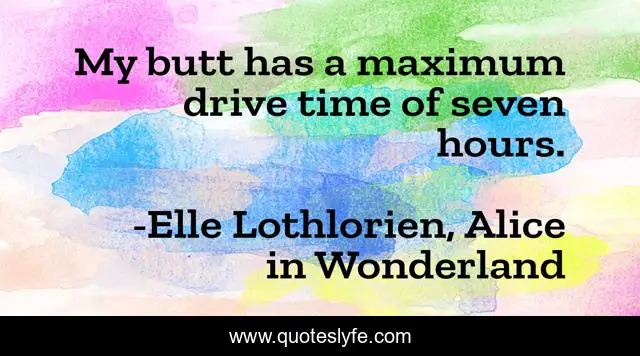 "Elle Lothlorien, Alice in Wonderland Quotes." Quoteslyfe.com, 2025. Fri. 05 Dec. 2025. <https://www.quoteslyfe.com/quote/My-butt-has-a-maximum-drive-time-155513>.