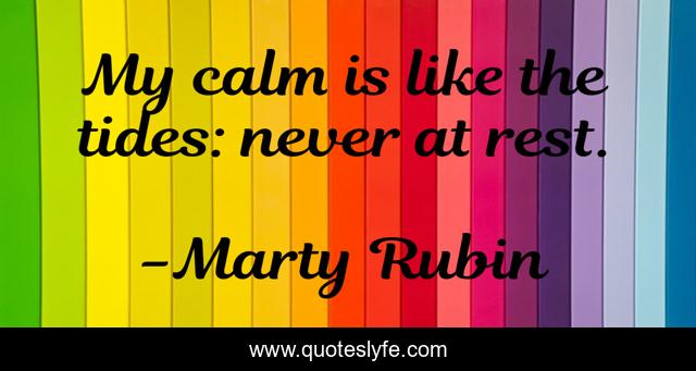 This page presents the quote "My calm is like the tides: never at rest.". Author of this quote is Marty Rubin. This quote is about balance, calm, movement,.