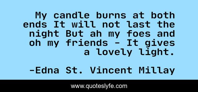 "Edna St. Vincent Millay Quotes." Quoteslyfe.com, 2025. Fri. 05 Dec. 2025. <https://www.quoteslyfe.com/quote/My-candle-burns-at-both-ends-It-269828>.