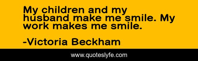 This page presents the quote "My children and my husband make me smile. My work makes me smile.". Author of this quote is Victoria Beckham. This quote is about me, work, children,.