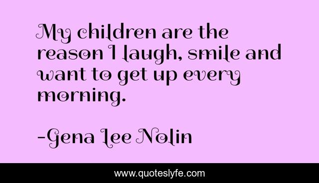This page presents the quote "My children are the reason I laugh, smile and want to get up every morning.". Author of this quote is Gena Lee Nolin. This quote is about smile, children, happiness, morning,.