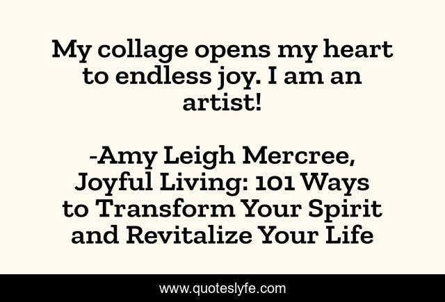 "Amy Leigh Mercree, Joyful Living: 101 Ways to Transform Your Spirit and Revitalize Your Life Quotes." Quoteslyfe.com, 2025. Mon. 08 Dec. 2025. <https://www.quoteslyfe.com/quote/My-collage-opens-my-heart-to-endless-15072>.