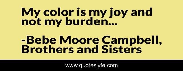 This page presents the quote "My color is my joy and not my burden...". Author of this quote is Bebe Moore Campbell, Brothers and Sisters. .
