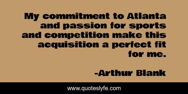 This page presents the quote "My commitment to Atlanta and passion for sports and competition make this acquisition a perfect fit for me.". Author of this quote is Arthur Blank. This quote is about passion, competition,.