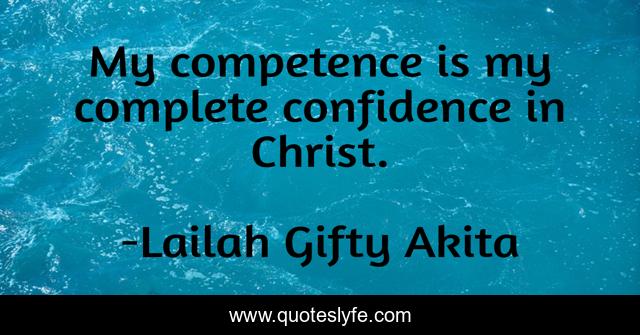 This page presents the quote "My competence is my complete confidence in Christ.". Author of this quote is Lailah Gifty Akita. This quote is about jesus-christ, confidence, self-esteem,.