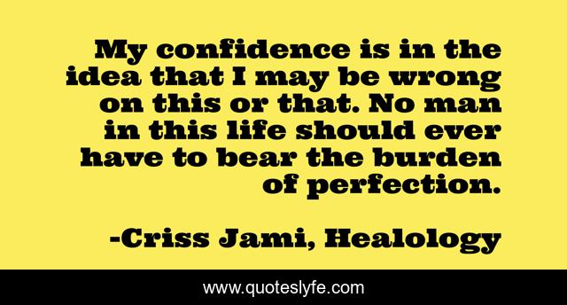 My confidence is in the idea that I may be wrong on this or that. No man in this life should ever have to bear the burden of perfection.