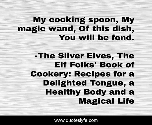 "The Silver Elves, The Elf Folks' Book of Cookery: Recipes for a Delighted Tongue, a Healthy Body and a Magical Life Quotes." Quoteslyfe.com, 2025. Mon. 08 Dec. 2025. <https://www.quoteslyfe.com/quote/My-cooking-spoon-My-magic-wand-Of-133777>.