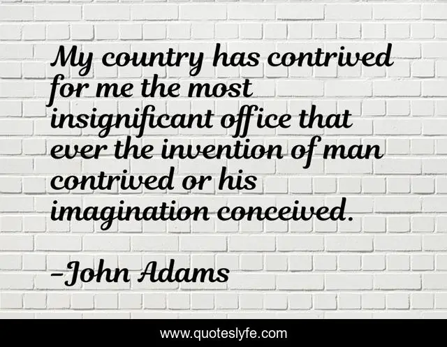 This page presents the quote "My country has contrived for me the most insignificant office that ever the invention of man contrived or his imagination conceived.". Author of this quote is John Adams. This quote is about me, country, man,.