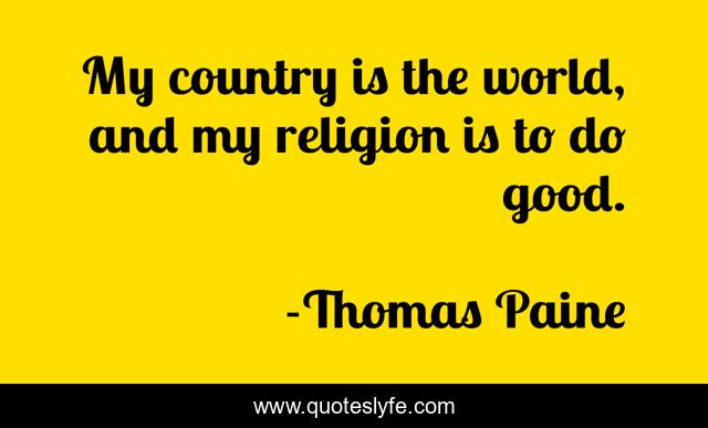 This page presents the quote "My country is the world, and my religion is to do good.". Author of this quote is Thomas Paine. This quote is about country, self, peace, religion, respect, america,.