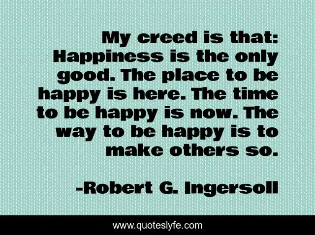"Robert G. Ingersoll Quotes." Quoteslyfe.com, 2025. Mon. 08 Dec. 2025. <https://www.quoteslyfe.com/quote/My-creed-is-that-Happiness-is-the-267203>.