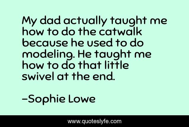 This page presents the quote "My dad actually taught me how to do the catwalk because he used to do modeling. He taught me how to do that little swivel at the end.". Author of this quote is Sophie Lowe. This quote is about me, modeling, end,.