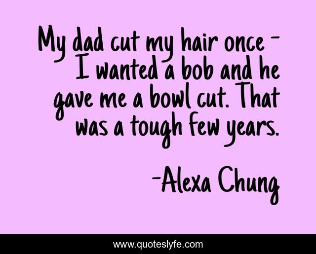 This page presents the quote "My dad cut my hair once - I wanted a bob and he gave me a bowl cut. That was a tough few years.". Author of this quote is Alexa Chung. This quote is about hair, me, years,.