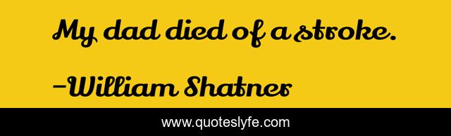 This page presents the quote "My dad died of a stroke.". Author of this quote is William Shatner. This quote is about stroke, died,.