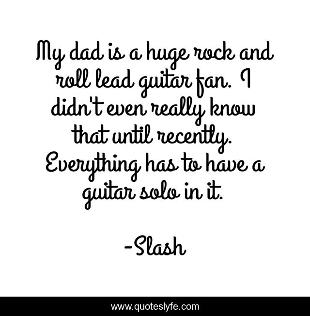 This page presents the quote "My dad is a huge rock and roll lead guitar fan. I didn't even really know that until recently. Everything has to have a guitar solo in it.". Author of this quote is Slash. This quote is about rock and roll, guitar,.