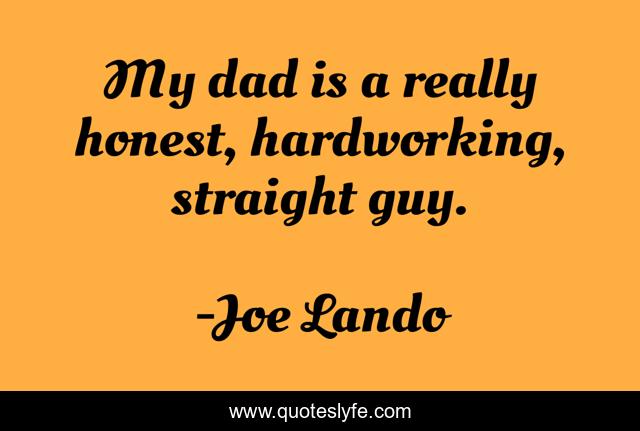 This page presents the quote "My dad is a really honest, hardworking, straight guy.". Author of this quote is Joe Lando. This quote is about guy, straight, honest,.