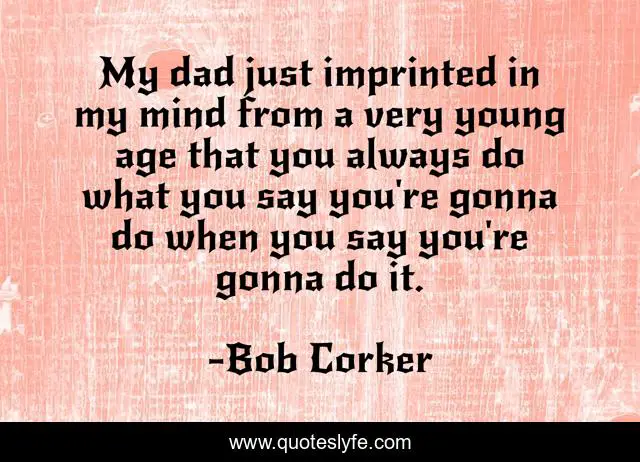 This page presents the quote "My dad just imprinted in my mind from a very young age that you always do what you say you're gonna do when you say you're gonna do it.". Author of this quote is Bob Corker. This quote is about mind, young,.