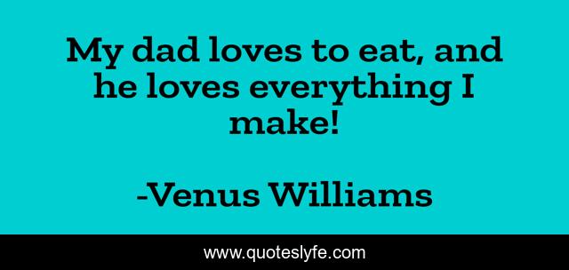 This page presents the quote "My dad loves to eat, and he loves everything I make!". Author of this quote is Venus Williams. This quote is about everything, eat, he,.