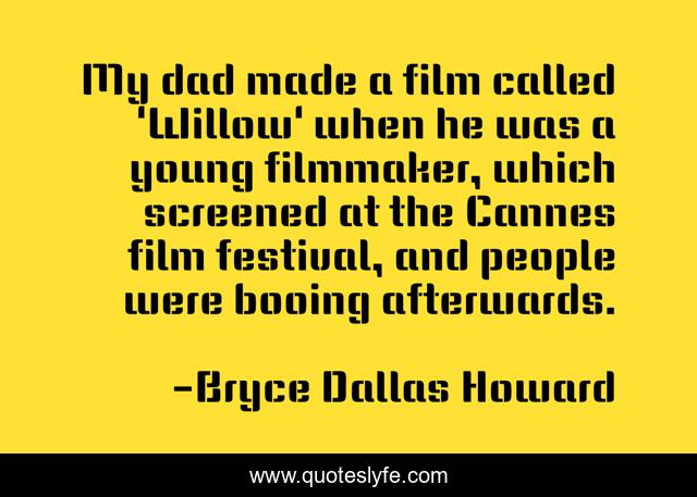 This page presents the quote "My dad made a film called 'Willow' when he was a young filmmaker, which screened at the Cannes film festival, and people were booing afterwards.". Author of this quote is Bryce Dallas Howard. This quote is about festival, young, people,.