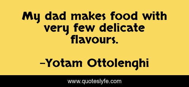 This page presents the quote "My dad makes food with very few delicate flavours.". Author of this quote is Yotam Ottolenghi. This quote is about food, few, delicate,.