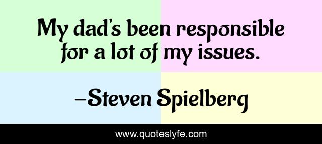 This page presents the quote "My dad's been responsible for a lot of my issues.". Author of this quote is Steven Spielberg. This quote is about responsible, issues, been,.