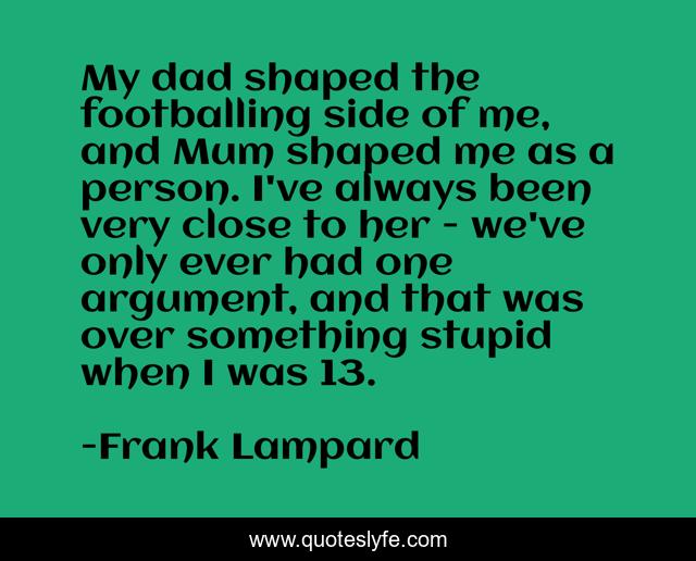 This page presents the quote "My dad shaped the footballing side of me, and Mum shaped me as a person. I've always been very close to her - we've only ever had one argument, and that was over something stupid when I was 13.". Author of this quote is Frank Lampard. This quote is about me, stupid, argument,.