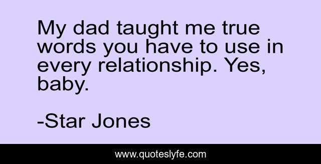 This page presents the quote "My dad taught me true words you have to use in every relationship. Yes, baby.". Author of this quote is Star Jones. This quote is about baby, relationship, words,.