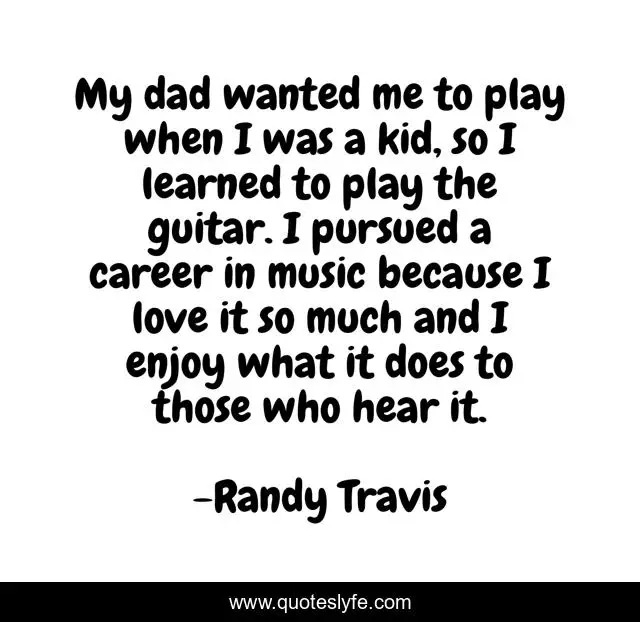 This page presents the quote "My dad wanted me to play when I was a kid, so I learned to play the guitar. I pursued a career in music because I love it so much and I enjoy what it does to those who hear it.". Author of this quote is Randy Travis. This quote is about me, enjoy, love, affection,.