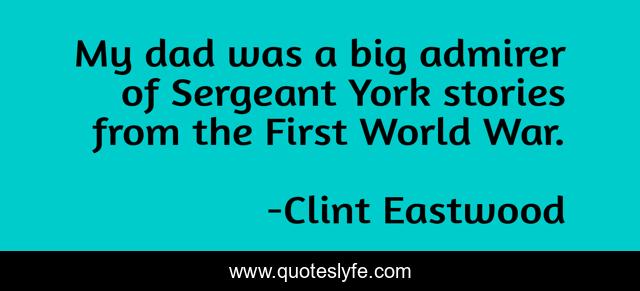 This page presents the quote "My dad was a big admirer of Sergeant York stories from the First World War.". Author of this quote is Clint Eastwood. This quote is about world, war, first,.