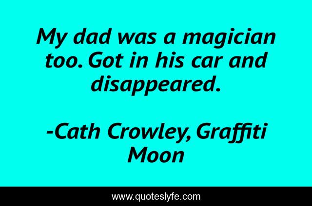 This page presents the quote "My dad was a magician too. Got in his car and disappeared.". Author of this quote is Cath Crowley, Graffiti Moon. .