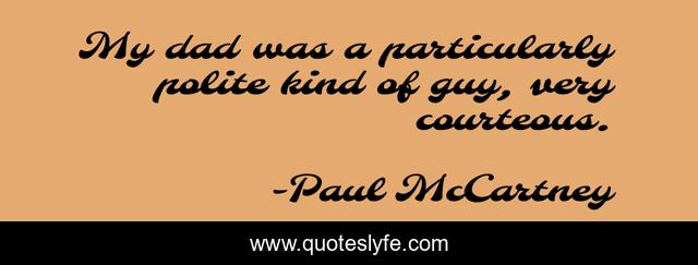 This page presents the quote "My dad was a particularly polite kind of guy, very courteous.". Author of this quote is Paul McCartney. This quote is about kind, courteous, guy,.