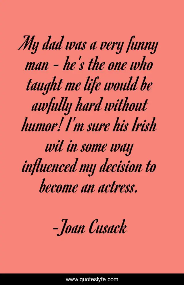 This page presents the quote "My dad was a very funny man - he's the one who taught me life would be awfully hard without humor! I'm sure his Irish wit in some way influenced my decision to become an actress.". Author of this quote is Joan Cusack. This quote is about funny, life, comedy, man,.