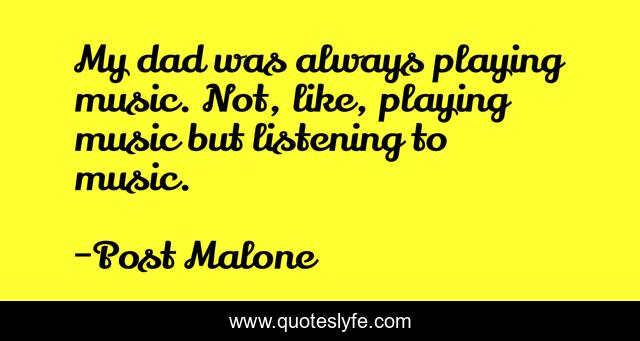This page presents the quote "My dad was always playing music. Not, like, playing music but listening to music.". Author of this quote is Post Malone. This quote is about always, music, listening,.