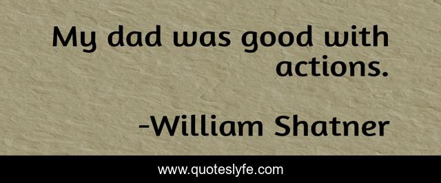 This page presents the quote "My dad was good with actions.". Author of this quote is William Shatner. This quote is about good, actions,.