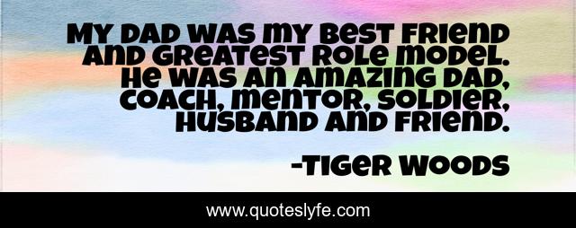 This page presents the quote "My dad was my best friend and greatest role model. He was an amazing dad, coach, mentor, soldier, husband and friend.". Author of this quote is Tiger Woods. This quote is about best friend, amazing, best,.