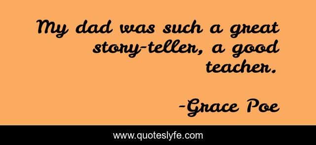 This page presents the quote "My dad was such a great story-teller, a good teacher.". Author of this quote is Grace Poe. This quote is about great, good, good teacher,.