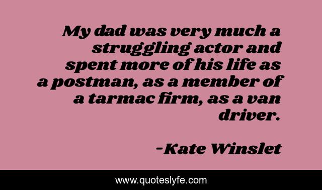 This page presents the quote "My dad was very much a struggling actor and spent more of his life as a postman, as a member of a tarmac firm, as a van driver.". Author of this quote is Kate Winslet. This quote is about life, driver, actor,.