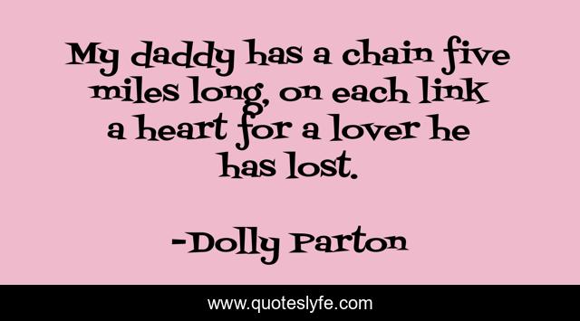 This page presents the quote "My daddy has a chain five miles long, on each link a heart for a lover he has lost.". Author of this quote is Dolly Parton. This quote is about love-dad, dolly, sad,.