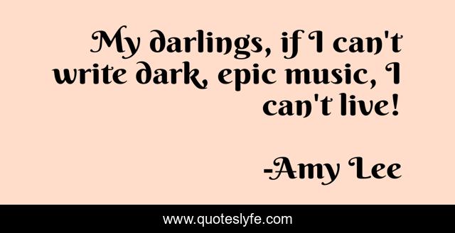 This page presents the quote "My darlings, if I can't write dark, epic music, I can't live!". Author of this quote is Amy Lee. This quote is about dark, live, epic,.