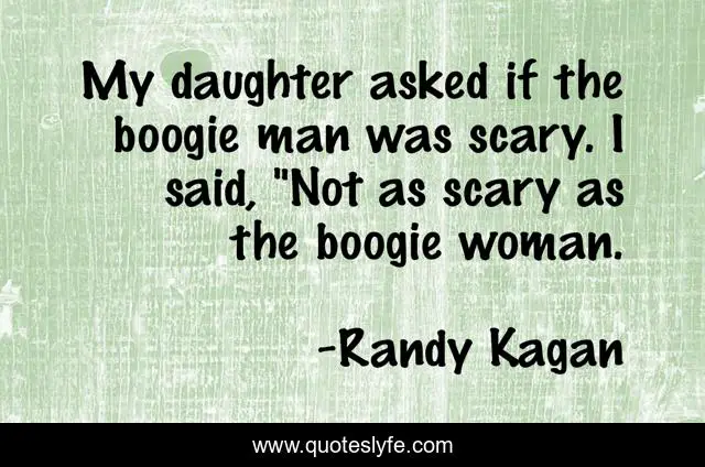This page presents the quote "My daughter asked if the boogie man was scary. I said, "Not as scary as the boogie woman.". Author of this quote is Randy Kagan. This quote is about funny, comedy, humor, kids,.