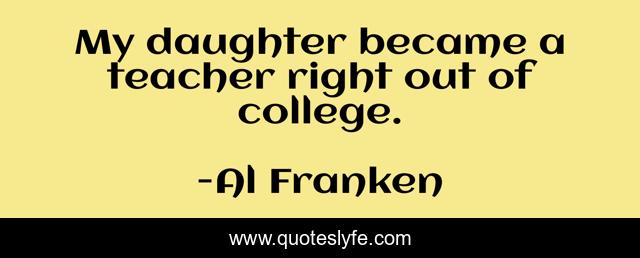 This page presents the quote "My daughter became a teacher right out of college.". Author of this quote is Al Franken. This quote is about daughter, right, college,.