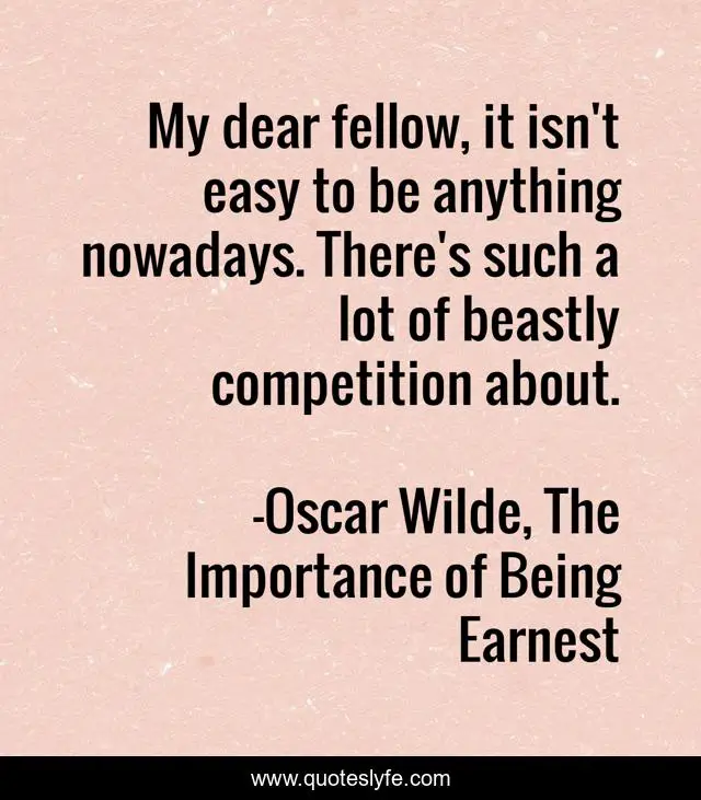 This page presents the quote "My dear fellow, it isn't easy to be anything nowadays. There's such a lot of beastly competition about.". Author of this quote is Oscar Wilde, The Importance of Being Earnest. This quote is about competition, goals, happiness, pursuit,.
