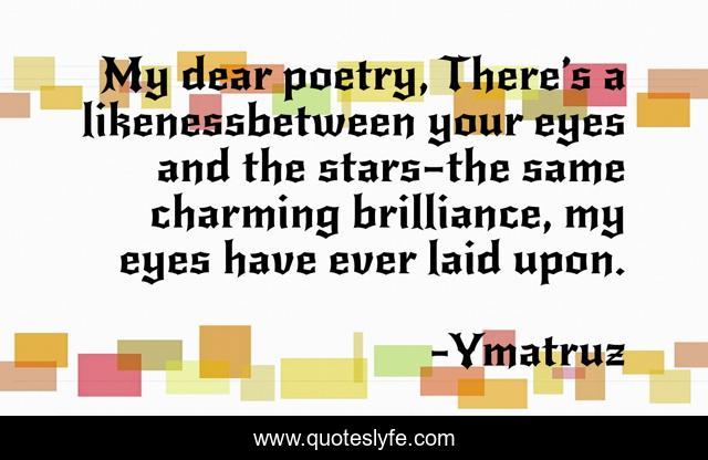 This page presents the quote "My dear poetry, There’s a likenessbetween your eyes and the stars–the same charming brilliance, my eyes have ever laid upon.". Author of this quote is Ymatruz. This quote is about love, love-and-sayings, affection,.